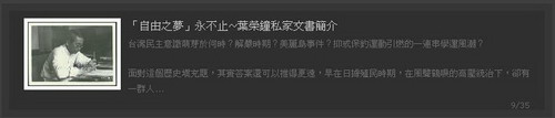 | ¡§Dream of Freedom¡¨ Never Ceases -- Introduction to Private Works of Rung-Chung Yeh¡]http://archives.lib.nthu.edu.tw/jcyeh/¡^ |